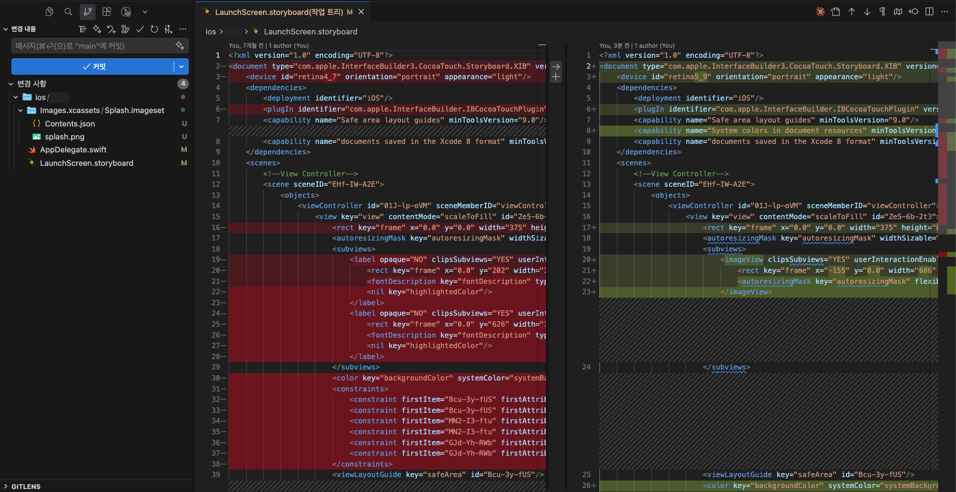 요렇게 Xcode에서 바꿔주면 코드도 알아서 바뀌어져 있어서 커밋까지 깔끔하게 해주면 완벼쿠 !