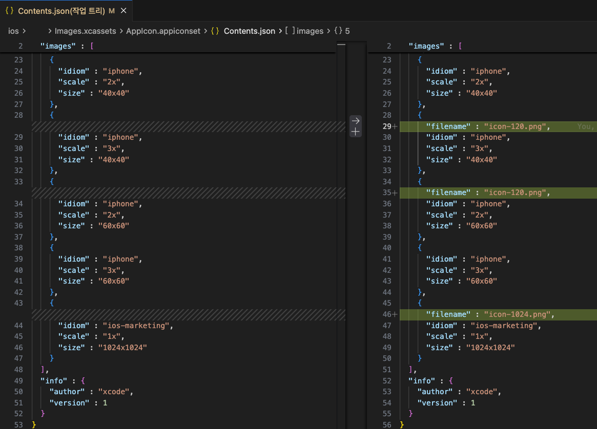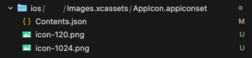 ios/{project}/Images.xcassets/AppIcon.appiconset/Contents.json 코드에서도 설정할 수는 있지만