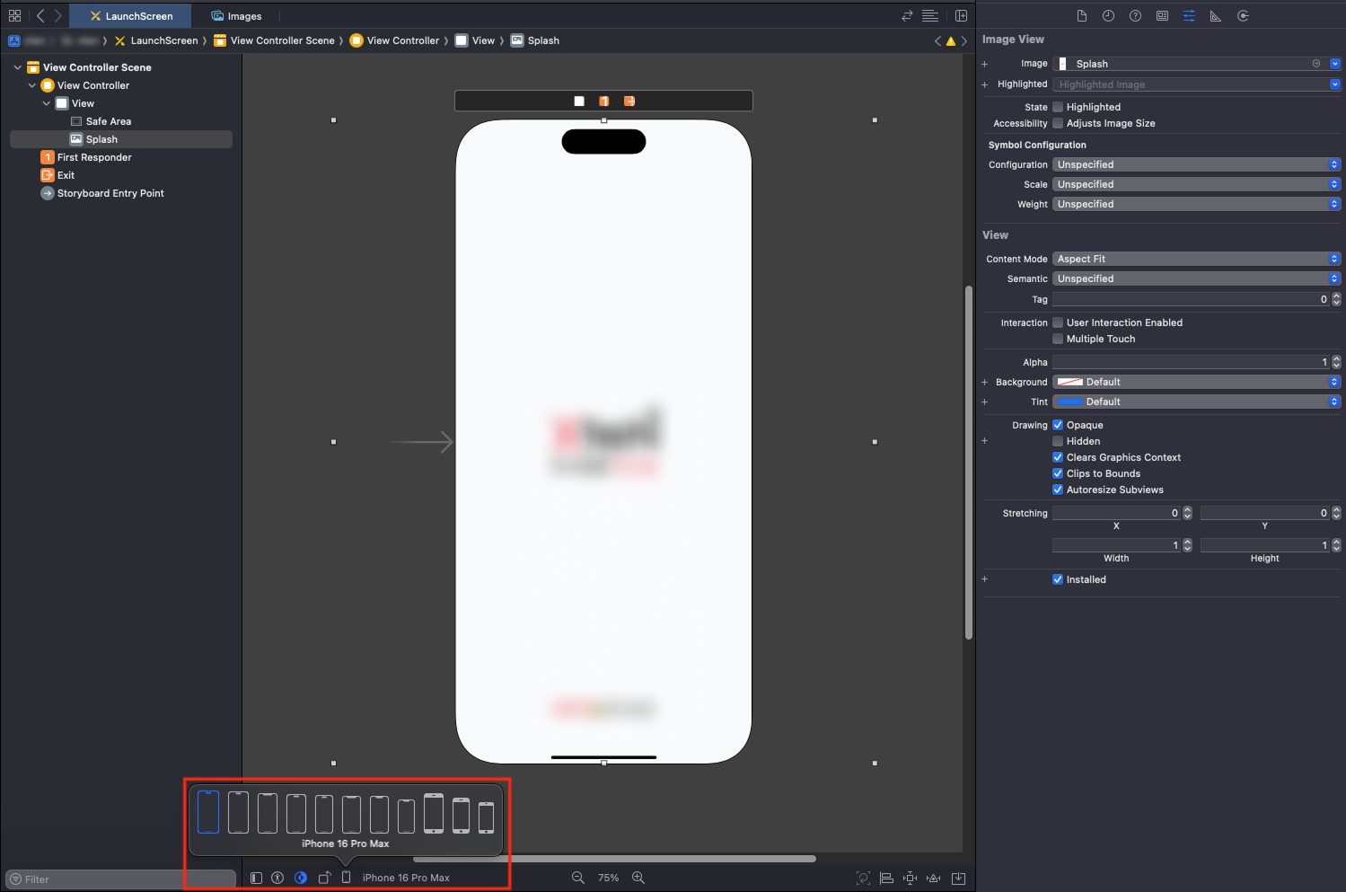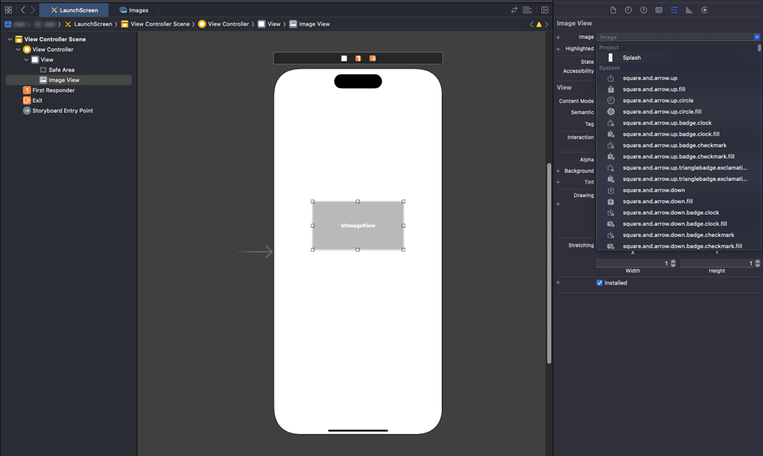 그 후 UIIamgeView 클릭해서 오른쪽 사이드바에 Image에 추가해둔 Splash를 클릭해줍니다.